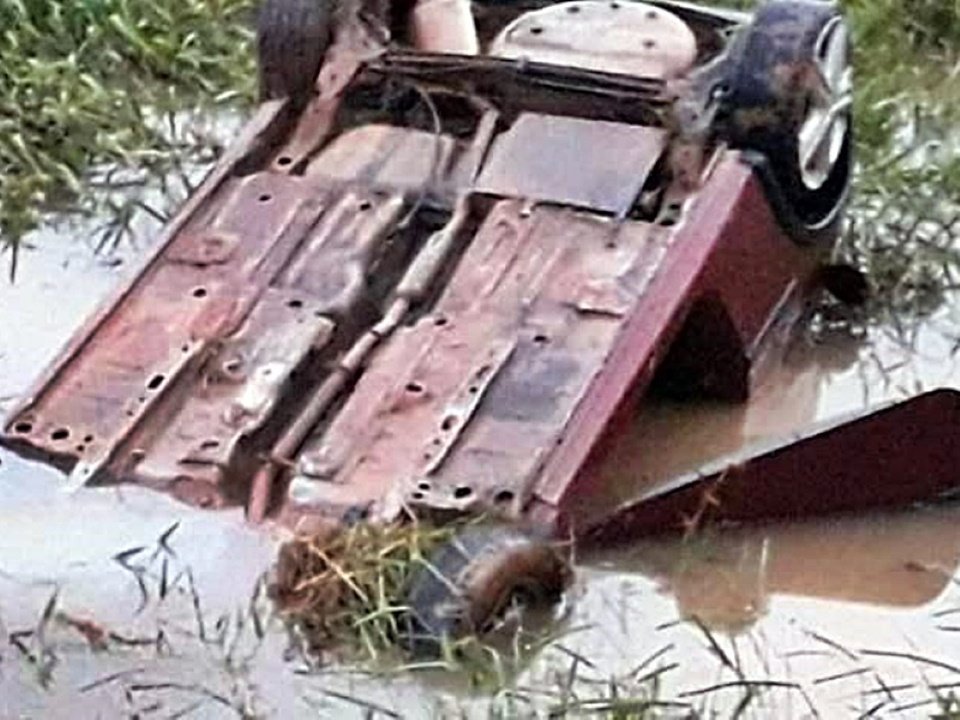 Os militares foram informados que o condutor do veículo de passeio seguia sentido Iúna x Irupi, quando em uma curva, perdeu o controle, caiu em um barranco e capotou até um rio.