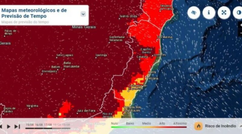 Read MoreÁreas em vermelho no mapa indicam risco elevado de incêndio devido à alta temperatura (Foto: Reprodução / Climatempo) Uma grande
